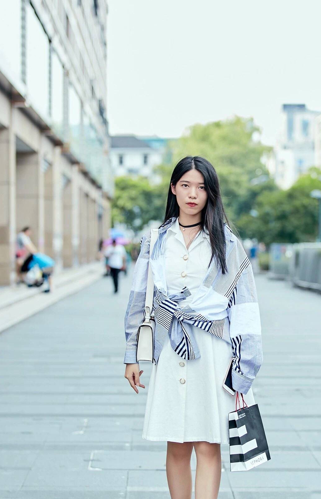 今天的最后一位時(shí)尚街拍的美女給我們的第一印象就是時(shí)髦,極具設(shè)計(jì)感的上衣搭配上白色的半身裙。美女腳踩一雙高跟鞋給人一種職業(yè)模特的感覺(jué)。