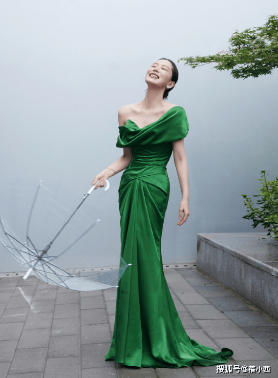 裹胸式的領(lǐng)口美到窒息,這也是用心之處,既沒有走光的風險,又修飾了肩線。