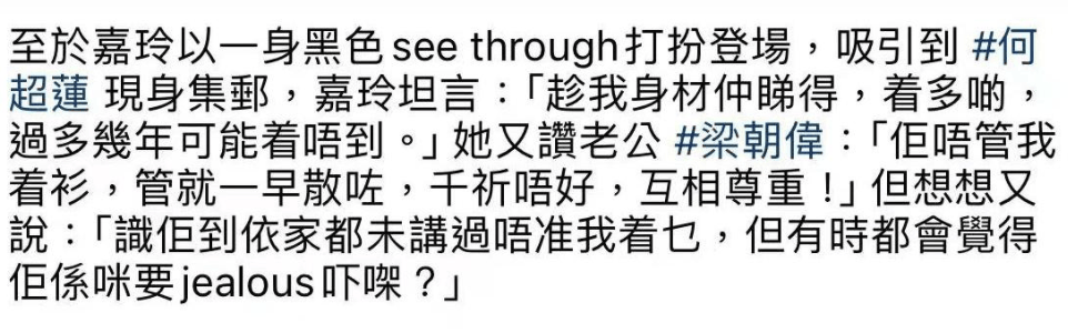 而且丈夫梁朝偉不會(huì)管自己的穿搭,劉嘉玲笑稱,如果她和梁朝偉會(huì)互相干涉對(duì)方的生活,可能一早就分開了。
