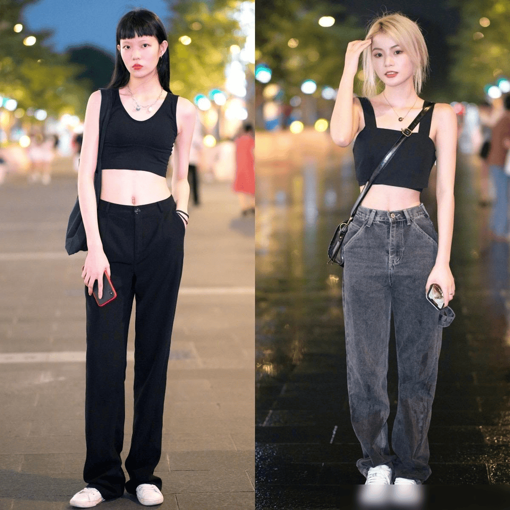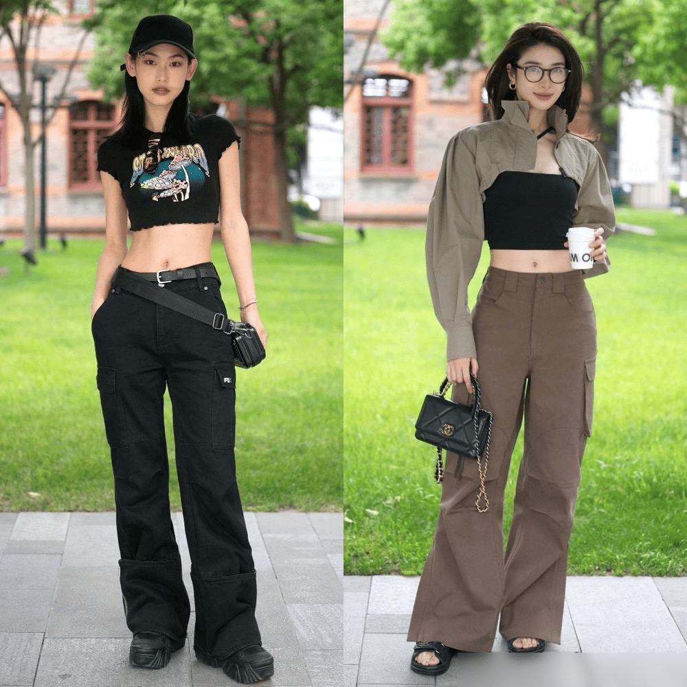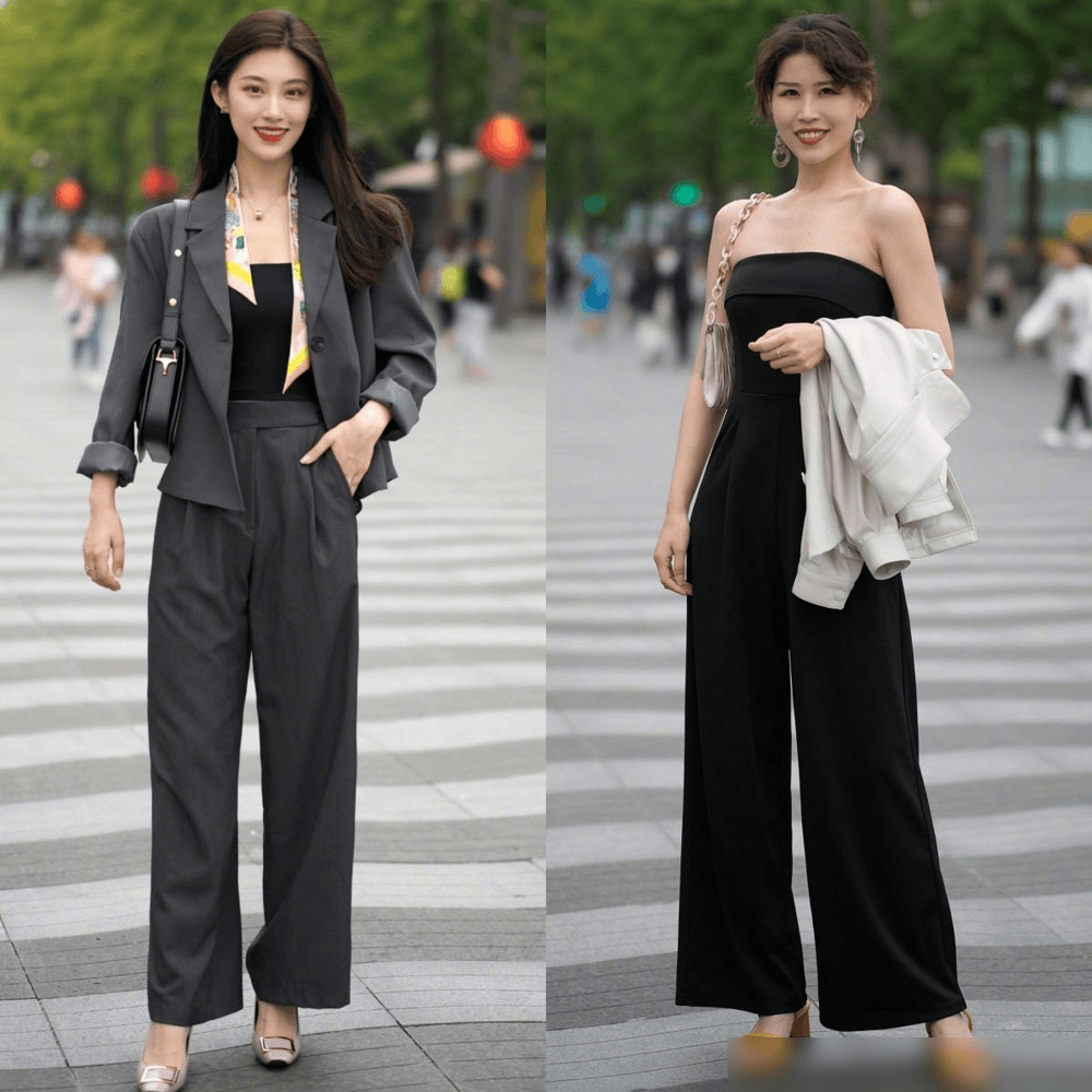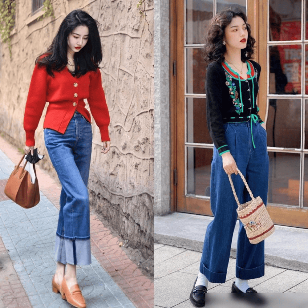 然后就是研究一下顏色搭配,找到喜歡或最近流行搭配風格,再進一步尋找與闊腿褲形成對比色彩、上衣與下身形成對比色彩有助于提高你的審美水平和設計能力,同時提升穿搭效果。