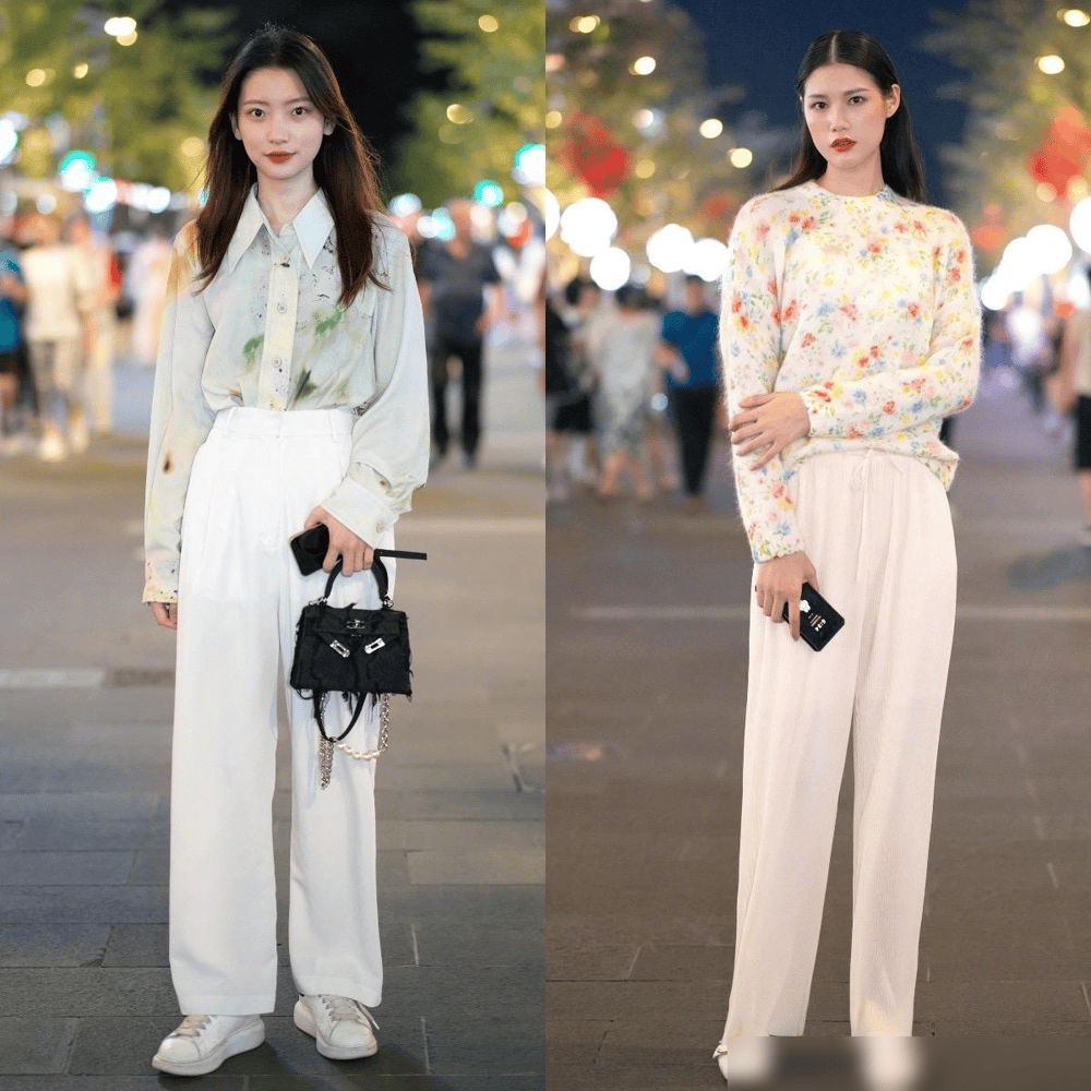 顯然并不是因為這些杭州女生的天生姿勢就比其它城市的女生身材要好,而是杭幫風格的闊腿褲與平底鞋搭配確實更容易凸顯出女人的優(yōu)雅氣質。