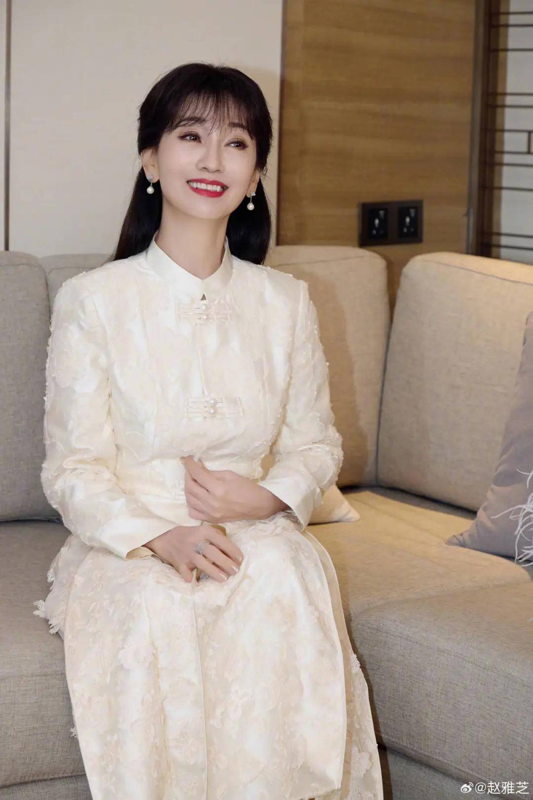 她也非常喜歡穿白色系新中式套裝,溫潤如玉。