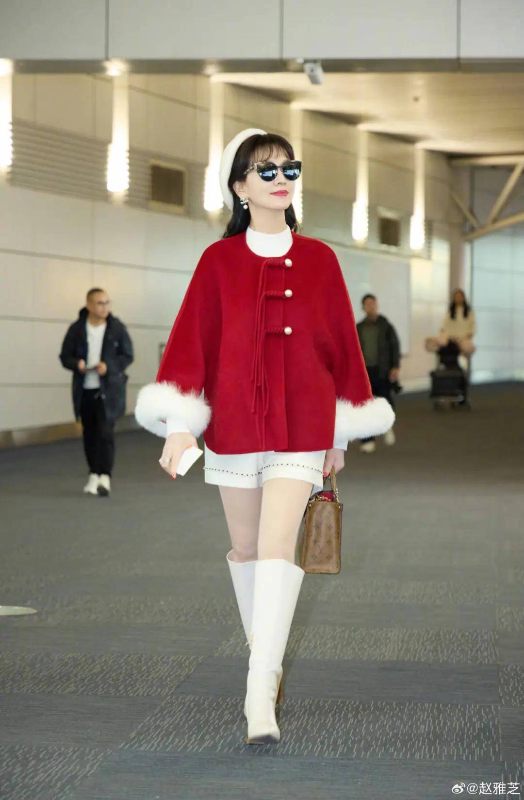生活中,她會把新中式穿得松弛可愛,這身紅色斗篷外套,胸前點綴珍珠盤扣,戴上小圓帽,搭配白色短褲和長靴,行走在機(jī)場,醒目又舒適,凸顯個人風(fēng)格。