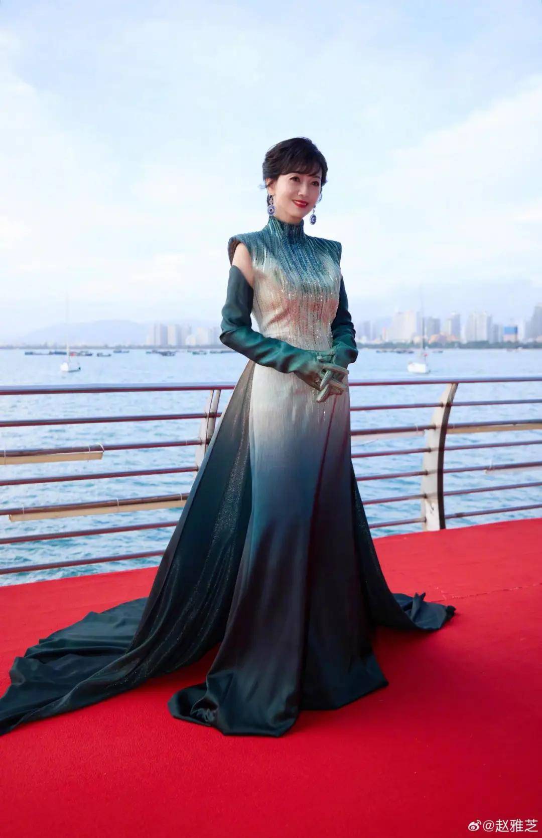 去年出席海南島國際電影節(jié)時,趙雅芝一連演繹了兩套MISUITY米休緹見己特別定制綠色款禮服。這身墨綠色亮面禮服,全身散發(fā)高級光芒,讓她如剛從大海中走出來的美人魚。