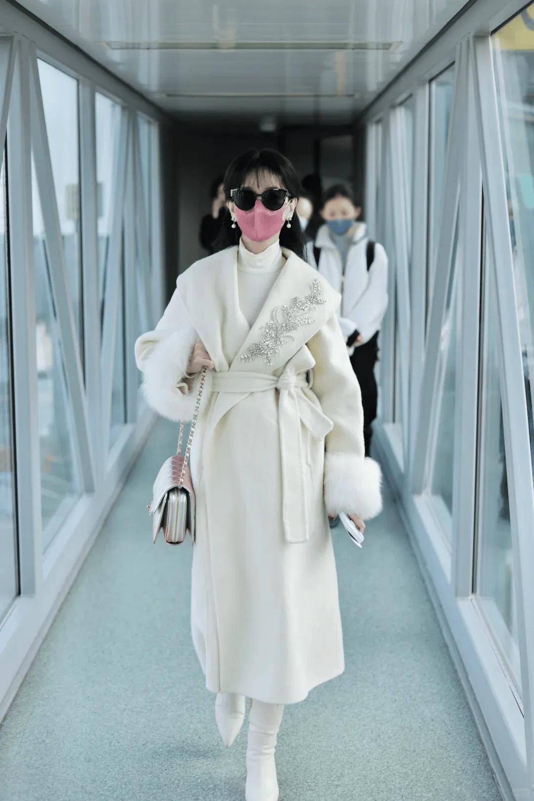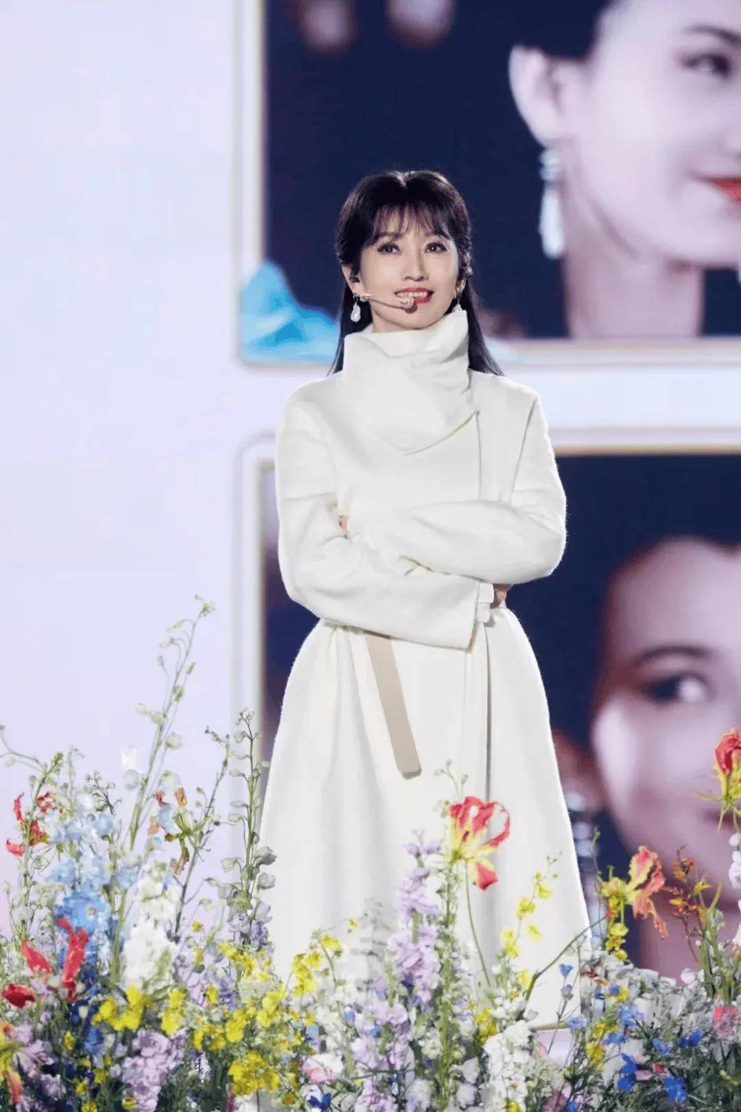 身穿白色GIADA羊絨大衣登臺表演,優(yōu)雅的花苞領(lǐng)凸顯天鵝頸,讓人夢回白娘子。