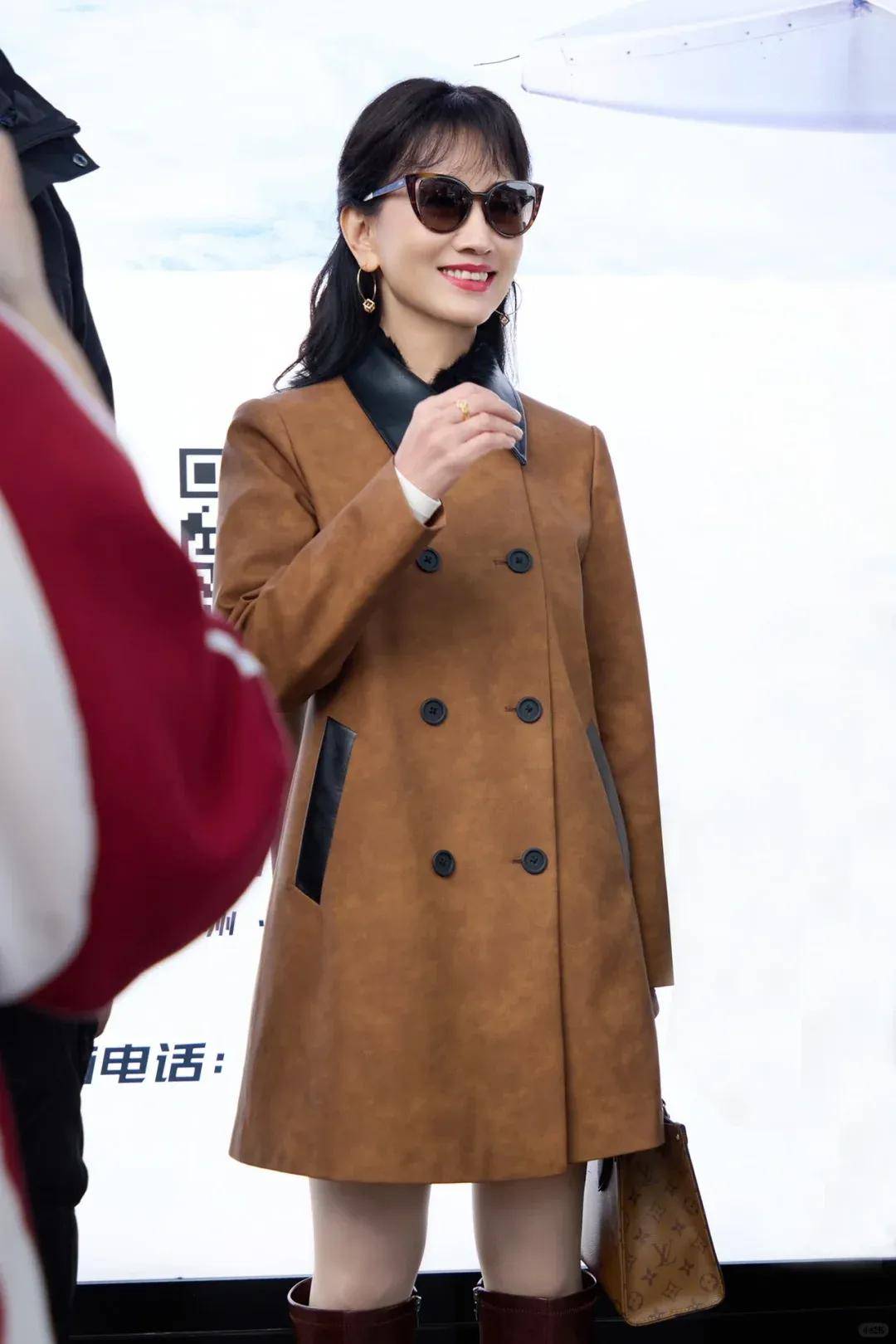 身著Ann teano棕色麂皮皮革拼接雙排扣外套裙,帥氣中不失女性溫婉,真的被種草了。