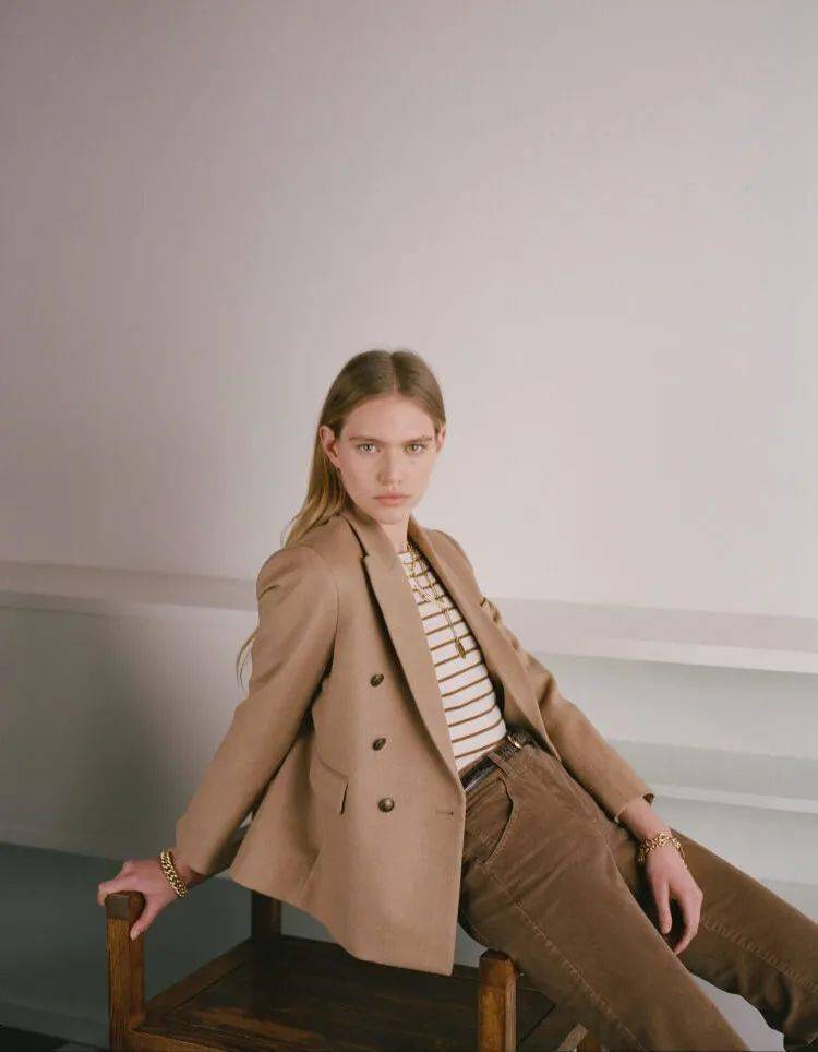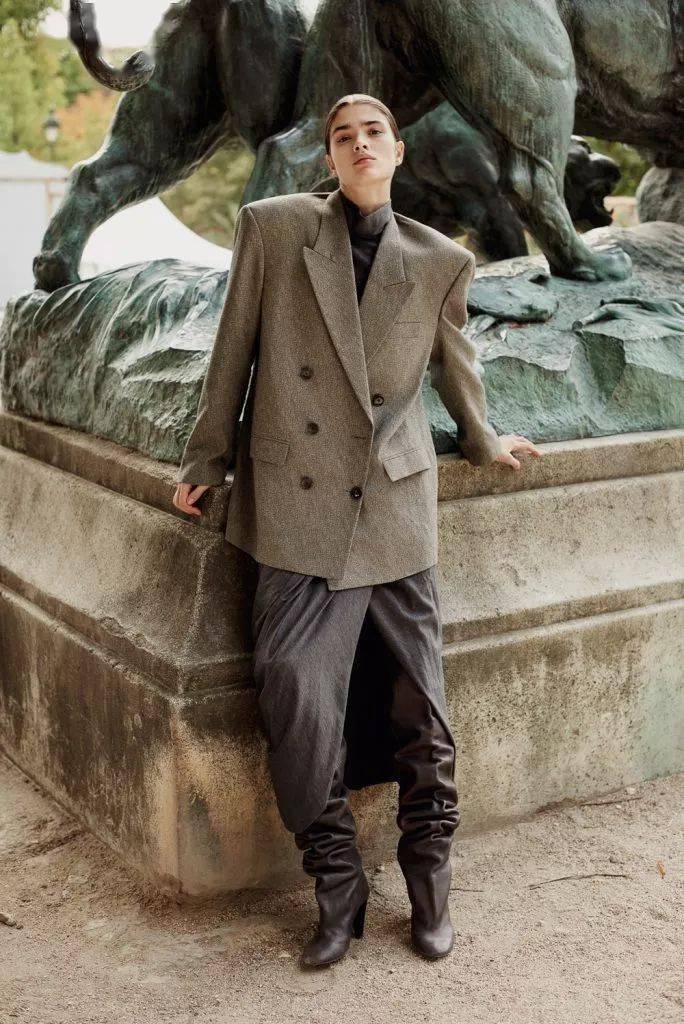 現(xiàn)在玩疊穿正正好,用襯衫內(nèi)搭小高領(lǐng),外穿一件西裝小外套,層次豐富。