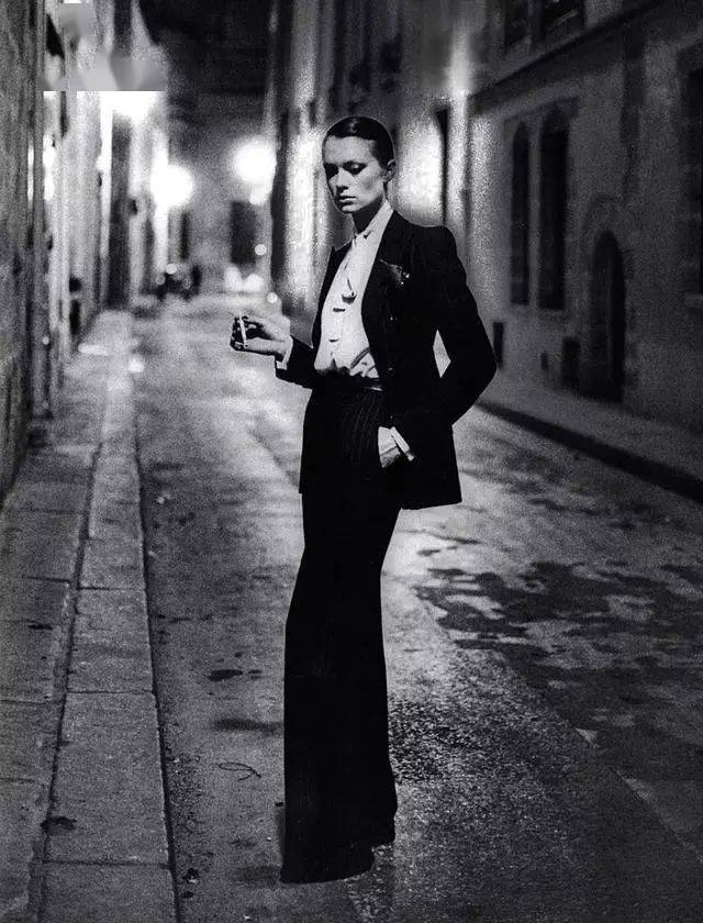女士西裝已經(jīng)有一段歷史了。在1966年,女權(quán)尚未啟蒙的年代,伊夫·圣·洛朗大膽的開創(chuàng)中性風(fēng)格,設(shè)計(jì)了第一件女性吸煙裝。