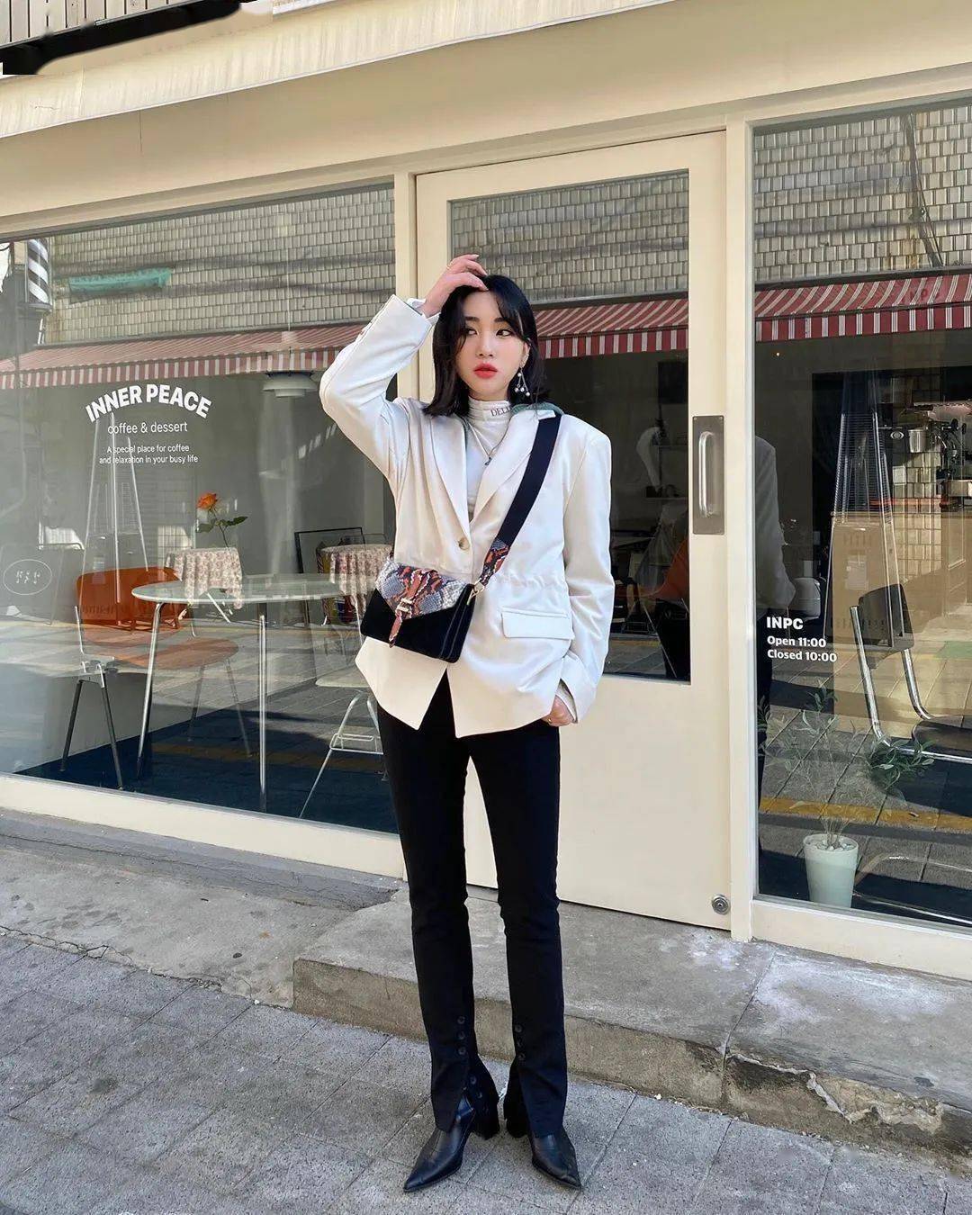 小黑褲和廓形西裝可以速配起來啊,帥氣又顯瘦。