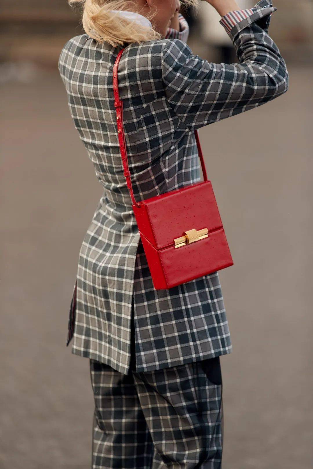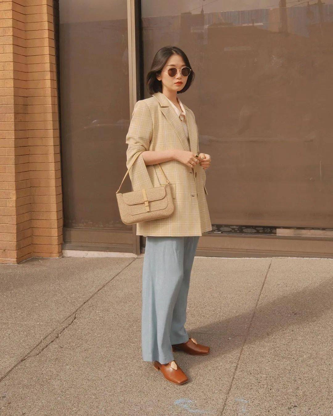 素雅的純色西裝也是如此,配一個(gè)亮色小包,太颯了。