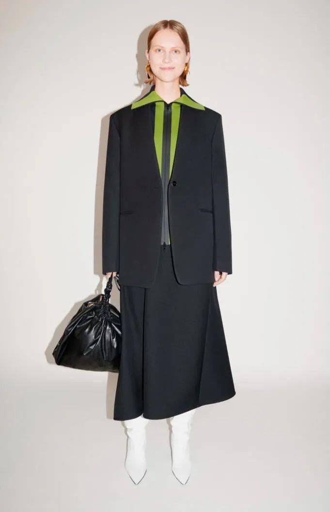 同樣的,黑色西裝套裝也可以這樣搭,讓人眼前一亮。