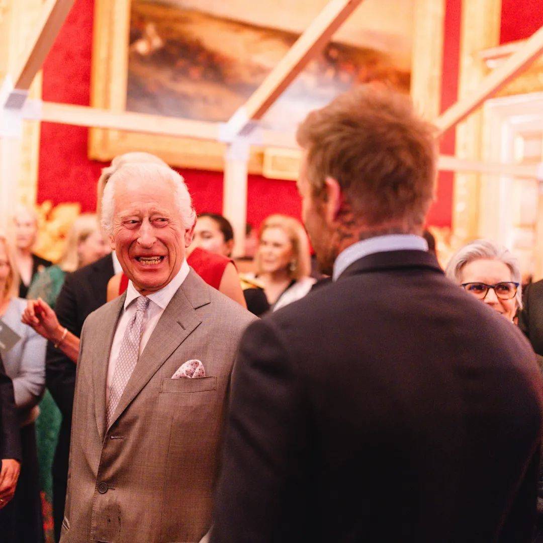 兩口子和查爾斯當天各種談笑風生。小貝看上去就像國王某個遠房表侄子,倆人從養(yǎng)蜂聊到種菜,硬是將王室宴會變成了“鄉(xiāng)村俱樂部團建”~
