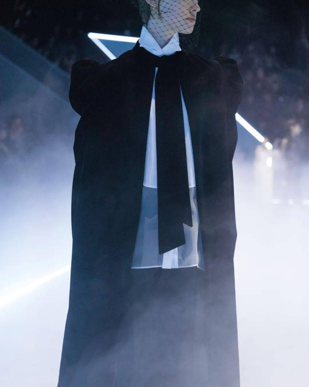 針對oversize款實施三點定位法:解開頂扣形成自然褶皺,金屬細(xì)腰帶固定于臍上3cm處,配合A字裙擺打造沙漏輪廓。