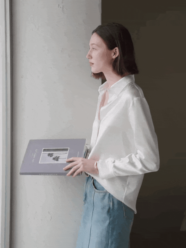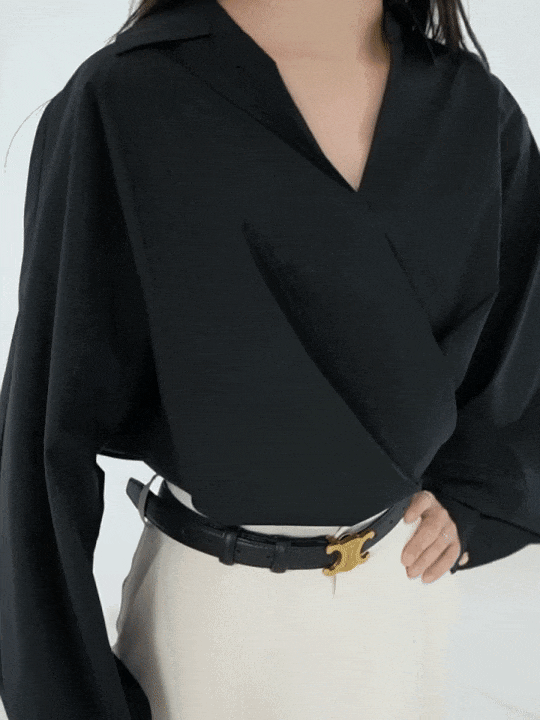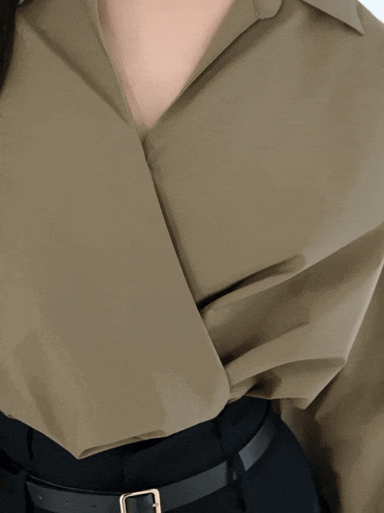 只要把襯衫最上面的扣子解開、用肩膀撐住,再把襯衫的下擺塞進下裝腰頭,就完成了!