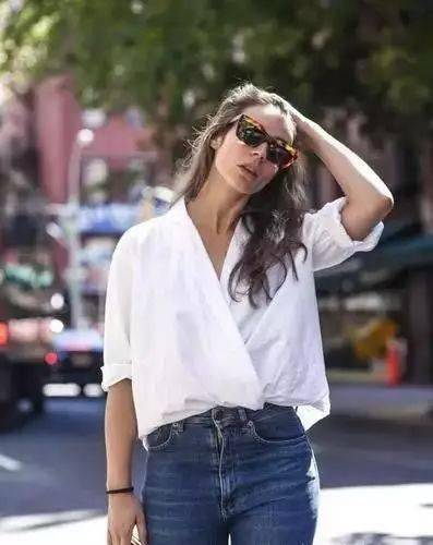 把襯衫的前襟,斜著疊成y字型,然后塞進下裝腰頭里,也是非常chic。