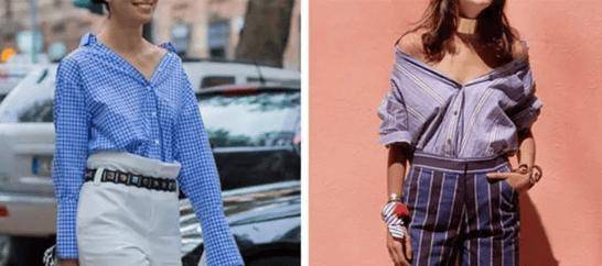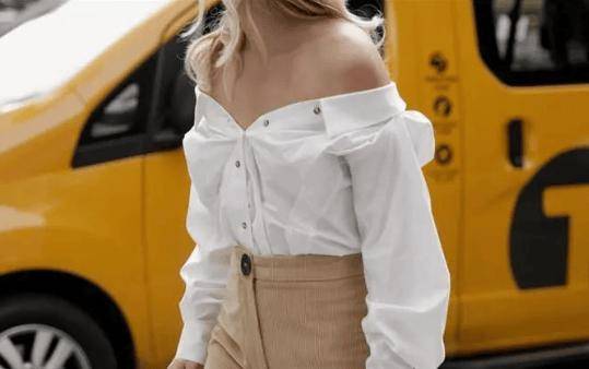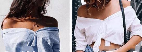 襯衫露肩的穿法,也可以下擺打結(jié),變成及腰短款,搭配高腰裙、高腰褲很顯高,特別適合度假風(fēng)。