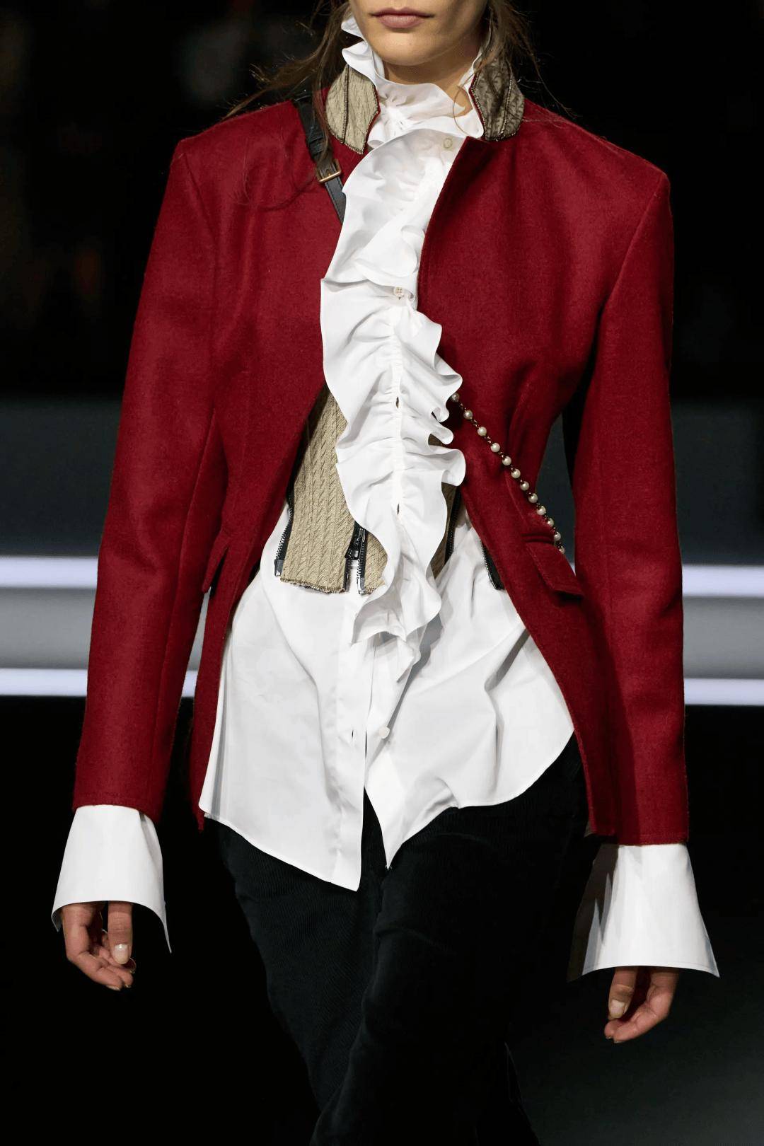 層次疊穿的優(yōu)勢在于,實用且方便,熱了脫一層、冷了就加一層,并且里外互不影響,整體搭配也會看起來很豐富很有細(xì)節(jié)感。