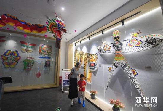 6月6日,游客在瓶窯老街內(nèi)參觀“風(fēng)箏燈彩館”。新華社記者 徐昱 攝