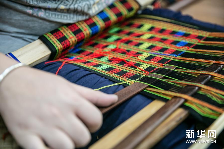 6月8日,陳達(dá)谞在織黎錦。新華社記者 張麗蕓 攝