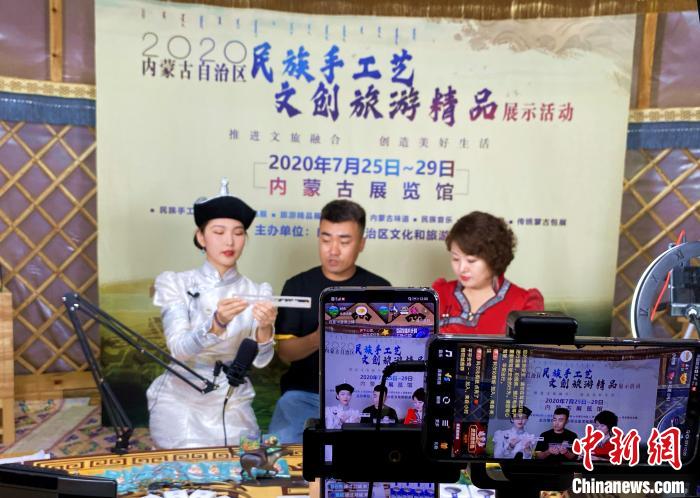 圖為“2020內(nèi)蒙古自治區(qū)民族手工藝和文創(chuàng)旅游精品展示活動”直播現(xiàn)場。 張瑋 攝