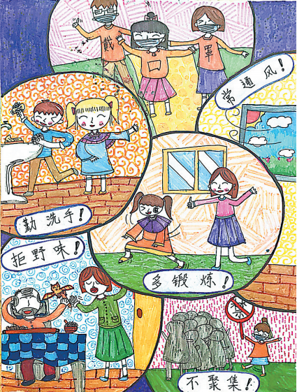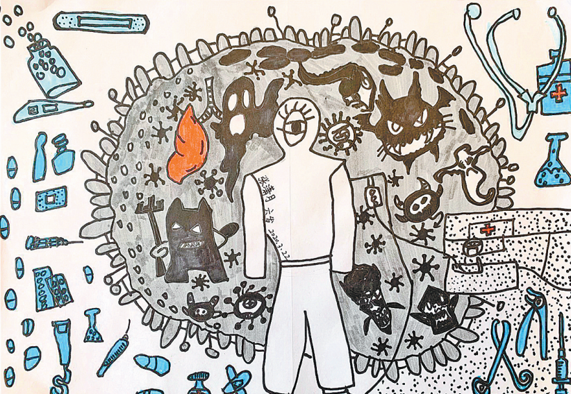 “眾志成城——抗疫主題美術(shù)作品展”共分為“抗疫·美術(shù)家在行動”“抗疫·書法家在行動”“抗疫·全國群眾在行動”三個單元,其中參展的群眾繪畫作品40余件。由武漢美術(shù)館收集的本市群眾繪畫作品參展20余件,有9幅都出自長江日報參與主辦的“居家綻藝·最美童畫”活動。