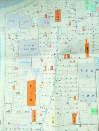 進(jìn)入明朝以后,金水河演變?yōu)榕潘乃?,稱“大明壕”,并將其向南延伸至北京內(nèi)城南邊的護(hù)城河。清沿明制,民國(guó)期間,陸續(xù)將大明壕改為暗溝,并在上面修筑道路,即今天的趙登禹路、太平橋大街與佟麟閣路。