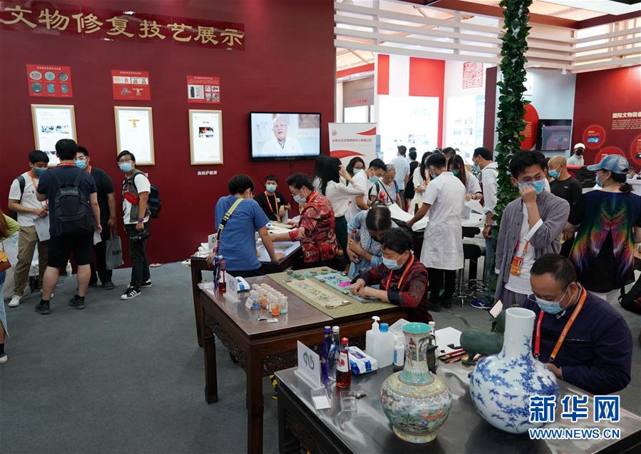 9月8日,觀眾在服貿(mào)會(huì)上參觀文物修復(fù)技藝展示。 2020年中國(guó)國(guó)際服務(wù)貿(mào)易交易會(huì)9月4日至9日在北京舉行。在本屆服貿(mào)會(huì)文化服務(wù)專題展區(qū),文物修復(fù)專家現(xiàn)場(chǎng)展示文物修復(fù)技藝,讓觀眾近距離感受文物修復(fù)過(guò)程。新華社記者 張晨霖 攝