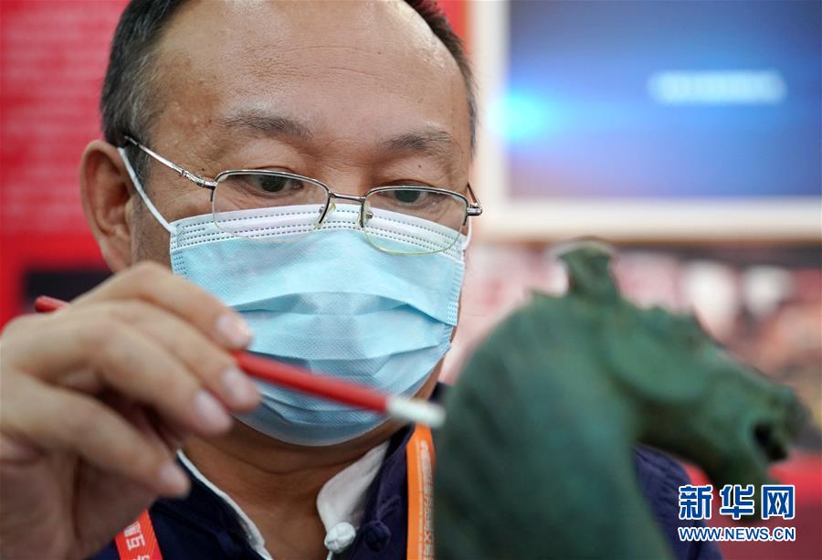 9月8日,文物修復(fù)專家韓松在展示青銅器修復(fù)技藝。 2020年中國(guó)國(guó)際服務(wù)貿(mào)易交易會(huì)9月4日至9日在北京舉行。在本屆服貿(mào)會(huì)文化服務(wù)專題展區(qū),文物修復(fù)專家現(xiàn)場(chǎng)展示文物修復(fù)技藝,讓觀眾近距離感受文物修復(fù)過(guò)程。新華社記者 張晨霖 攝