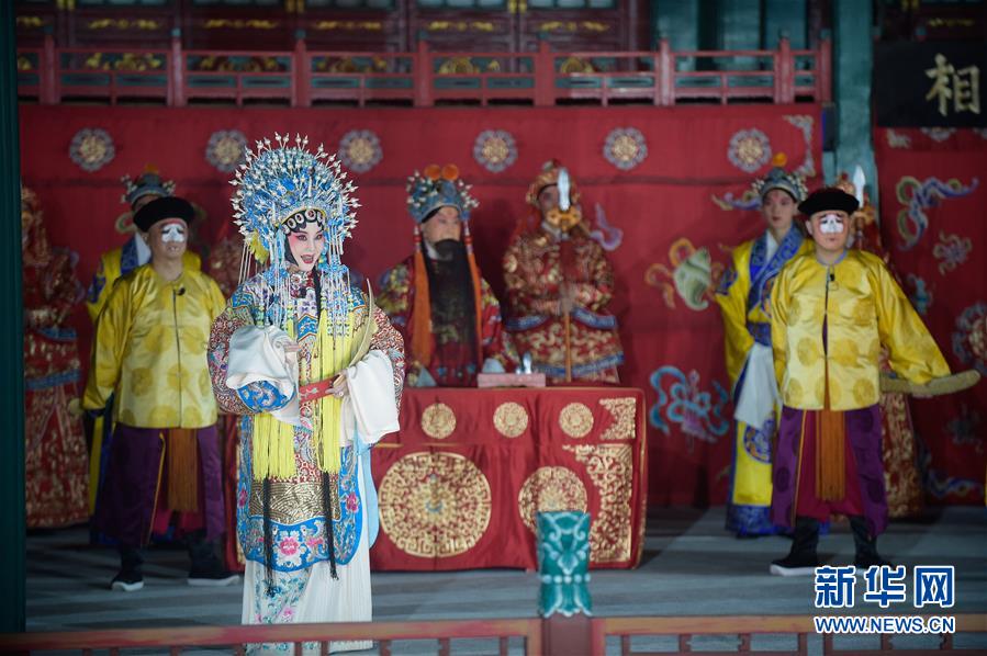 9月28日,演員在德和園大戲樓臺上表演?;顒油ㄟ^多個網(wǎng)絡(luò)平臺直播,即日起連續(xù)三晚邀請觀眾“云”看戲,慶中秋。