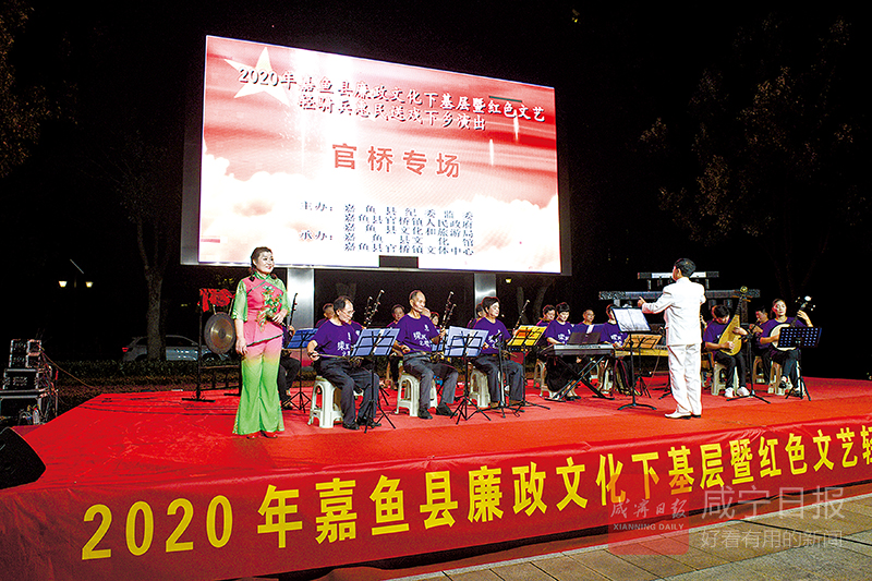 9月4日,2020年嘉魚縣廉政文化下基層暨紅色文藝輕騎兵惠民送戲下鄉(xiāng)首場演出在官橋八組舉行。通過唱廉歌、演廉戲、送廉禮,唱響廉政好聲音,宣傳抗疫好典型,把最新最好的藝術作品呈現(xiàn)給基層群眾,營造風清氣正、文明和諧的社會環(huán)境。據(jù)悉,接下來還會有7場廉政文藝演出將在各鎮(zhèn)舉行。