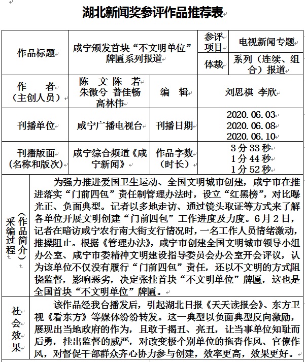 咸寧頒發(fā)首塊“不文明單位”牌匾系列報(bào)道