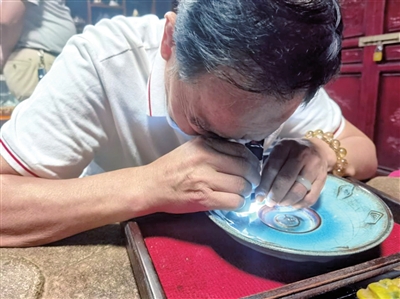 一件造型古樸雅致的瓷盤吸引了記者的注意,劉興余介紹,這件瓷器也是他歷經辛苦得到的?!斑@件瓷器比較完整,沒有什么瑕疵,當時這種瓷器多用于‘官用’,使用者也屬于非富即貴。我當時看到的時候就覺得很難得,比較珍貴,便買了下來?!?/p>