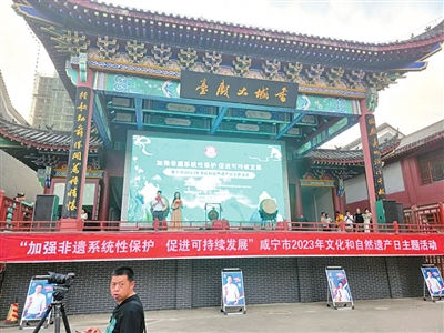 6月10日晚,陣陣音樂聲從咸安區(qū)明飛影視街傳來。定睛一看,現(xiàn)場更是人頭攢動,熱鬧非凡?!凹訌?qiáng)非遺系統(tǒng)性保護(hù) 促進(jìn)可持續(xù)發(fā)展”咸寧市2023年文化和自然遺產(chǎn)日主題活動正在此處舉辦。