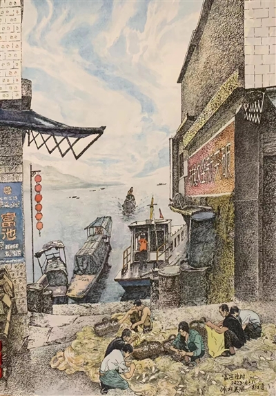 過去我總認(rèn)為鋼筆不能畫大畫,因?yàn)殇摴P用筆不能像傳統(tǒng)中國畫那樣大大咧咧,畫大幅中國畫可以用大毛筆。我沒有見過大鋼筆,即使有大鋼筆,筆尖出水口也不可能大。