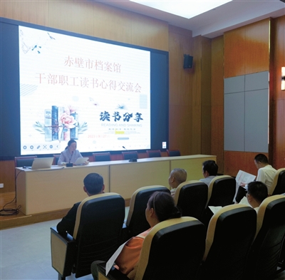 9月27日,赤壁市檔案館結合全民閱讀和清廉機關建設的有關活動要求,組織召開干部職工讀書心得交流會。