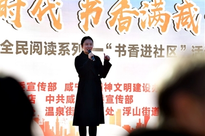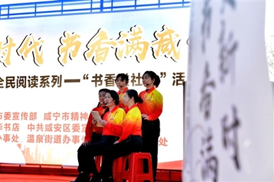 活動在《威風(fēng)鑼鼓》鏗鏘有力的鼓聲中拉開序幕。隨后,永安街道辦事處選送的朗誦節(jié)目《長津湖》、浮山街道辦事處帶來的舞蹈《溫泉河》、咸安區(qū)朗誦藝術(shù)家協(xié)會帶來的朗誦《讀書是什么》、市委宣講團(tuán)成員王美惠帶來“強(qiáng)國復(fù)興有我”百姓宣講《榜樣有力量,吾輩當(dāng)自強(qiáng)!》等節(jié)目輪番上演?,F(xiàn)場氣氛十分融洽,觀眾在濃濃的書香中,充實(shí)著自己的精神世界。