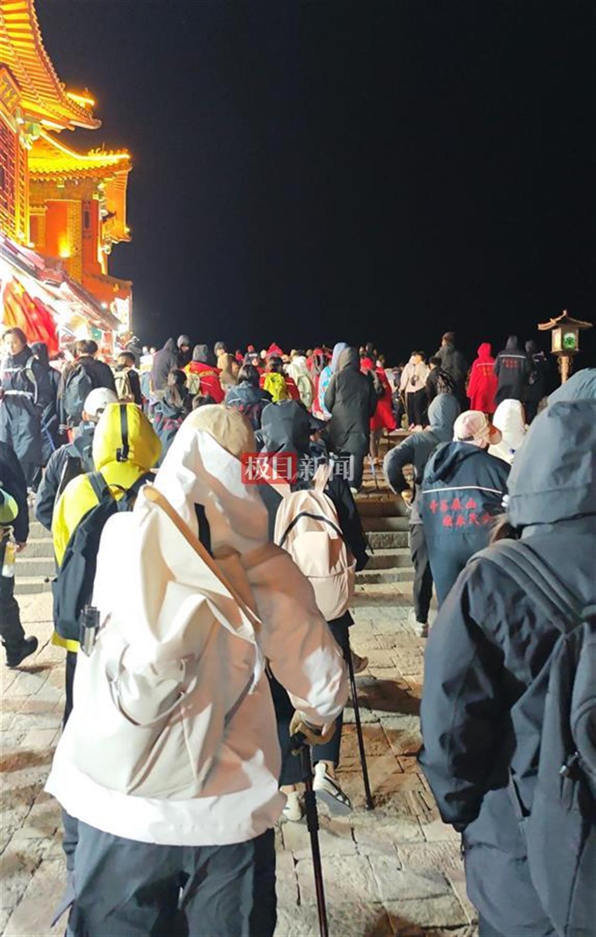玉皇廟位于海拔1545米的泰山之巔,盡管寒風(fēng)呼嘯,游客熱情高漲,迎接著即將到來的日出勝景。