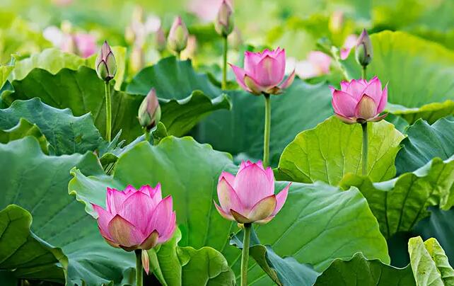 湖邊,水如明鏡。藍(lán)天白云倒映其中,明凈而靜謐。湖中水草肥美,凝神注目,魚兒在水中嬉戲玩鬧,往來翕忽。循著清香襲來的方向,在滿湖的蓮葉與荷花之下,泛起菱角片片。不遠(yuǎn)處的湖面上,成群的烏鬢鵝悠然戲水,間或拍打著灰白色的翅膀從頭頂悠然而過。