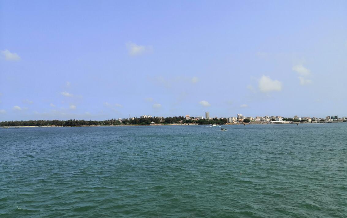 硇洲島是一座島外島。開(kāi)車過(guò)跨海大橋先進(jìn)入東海島,這是廣東最大的島嶼,面積近300平方公里,寶武鋼鐵集團(tuán)在這個(gè)島上建有基地。車行半個(gè)小時(shí)左右,就到了東海島碼頭,再?gòu)拇a頭上滾裝輪渡,大約二十多分鐘就到硇洲島了。