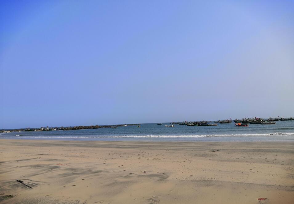 這里的波濤經(jīng)過(guò)前面一圈礁石的阻擋后,打在沙灘上并沒(méi)有文人描寫的那樣洶涌澎湃,而是輕柔曼妙。泛著白色的海浪輕輕沖擊沙灘,盡最大能力地往沙灘遠(yuǎn)處延伸,然后又緩緩地退回到海里,帶走了我的腳印,磨平了沙灘的創(chuàng)傷。我們赤腳走在沙灘上,任海浪輕揉地拍打,任海風(fēng)輕輕迎面吹拂,讓這涼爽爽的風(fēng)浪沖走炎熱的白天帶來(lái)的沉悶心情。眺望大海,目光所及的盡頭,時(shí)不時(shí)地閃著點(diǎn)點(diǎn)漁火似的燈光,那是天邊的游子歸來(lái)的點(diǎn)點(diǎn)信號(hào)?!