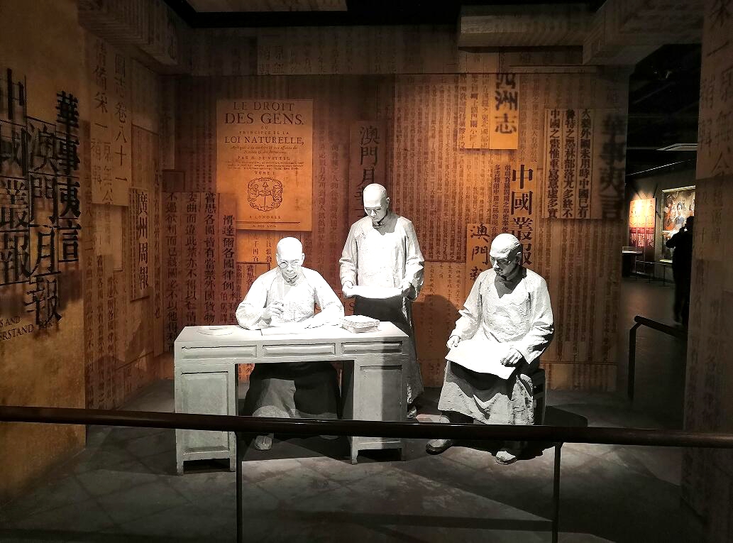 中軸線盡頭是鴉片戰(zhàn)爭博物館,走進博物館,里面擺放著或從民間收集來的實物,或制作逼真的蠟像雕塑,或精心打造的影視資料等,并加以文字說明,展現(xiàn)了當年那場銷煙運動的歷史背景,再一次加深參觀者對那場禁煙運動的歷史印象。