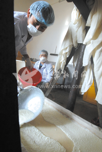 他們家的豆腐史可推到清朝年間,具體是清朝什么時(shí)候,一家人誰也說不清楚。但現(xiàn)在他家的豆腐產(chǎn)量多、質(zhì)量好,生意俏,是有記載以來祖上沒有的。