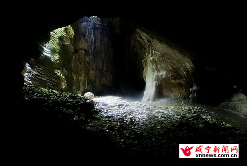踏著沒膝的溪水,我們走進(jìn)洞內(nèi)。在黑暗中摸索了約十分鐘,只覺眼前一亮,幾束陽光幽幽地落在洞底的碎石上,光氣琉璃,像極了夢(mèng)幻的海底世界。走到洞明處抬頭一瞧,只見頭頂上有三個(gè)天窗,一個(gè)呈三角形,另外兩個(gè)洞則像是巨人翻山時(shí)鏤下的兩個(gè)腳印,又像是天燭山與天空對(duì)望的一雙眼睛。在三角形天窗旁有一石隱蔽的石洞,出得洞來,卻發(fā)現(xiàn)自己站在了天燭山的半腰上了,山上玉竹萬桿,溫潤有澤。