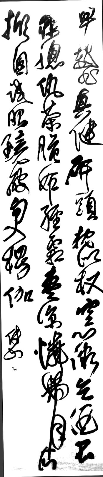 清朝書法家為了抵制元明至清初長期流行的妍媚書風,提出了“寧拙毋巧、寧丑毋媚、寧支離毋輕滑、寧直率毋安排”的丑趣口號,主張寫書法要自然天趣,不要故作安排。傅山草書(如圖)如同其人,膽大自由,不愿受傳統(tǒng)技法的羈絆,行筆辛辣流暢,手腕翻轉(zhuǎn)絞合自由,如蒼龍戲大海,無故意雕飾之痕。(盧方祥)