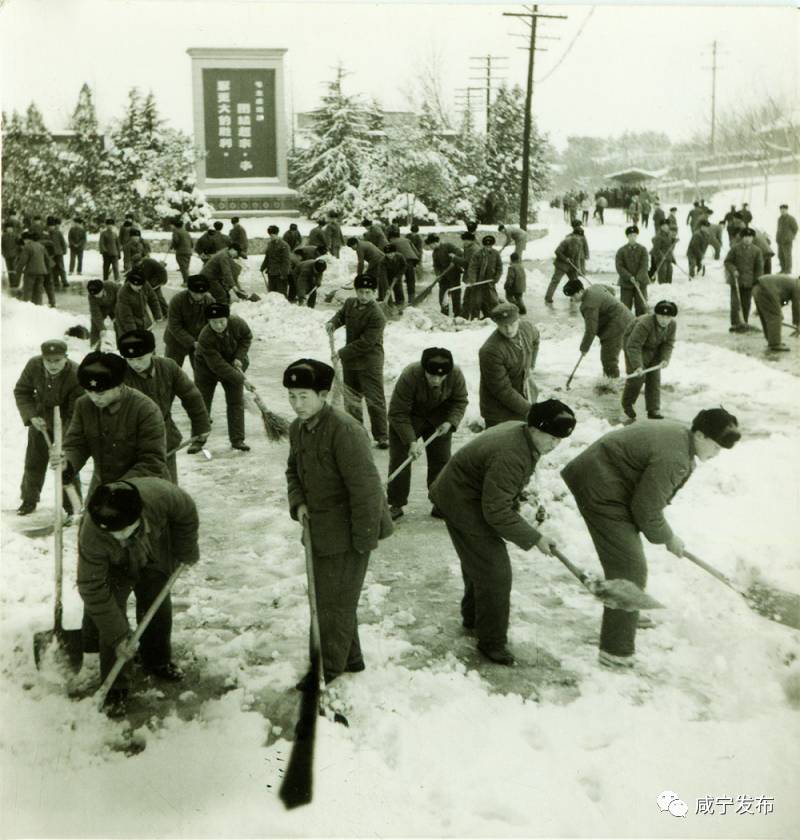 嵌入本文的第二張是在同一個地方的黑白照片,在溫泉花壇,在雪花飄過后,一群平凡的人在鏟雪,呈現(xiàn)出那個時代的精氣神。