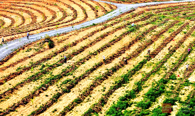 4月13日,赤壁市余家橋鄉(xiāng)大嶺村藍(lán)莓種植基地,當(dāng)?shù)毓と藗冋诮o藍(lán)莓苗除草施肥。