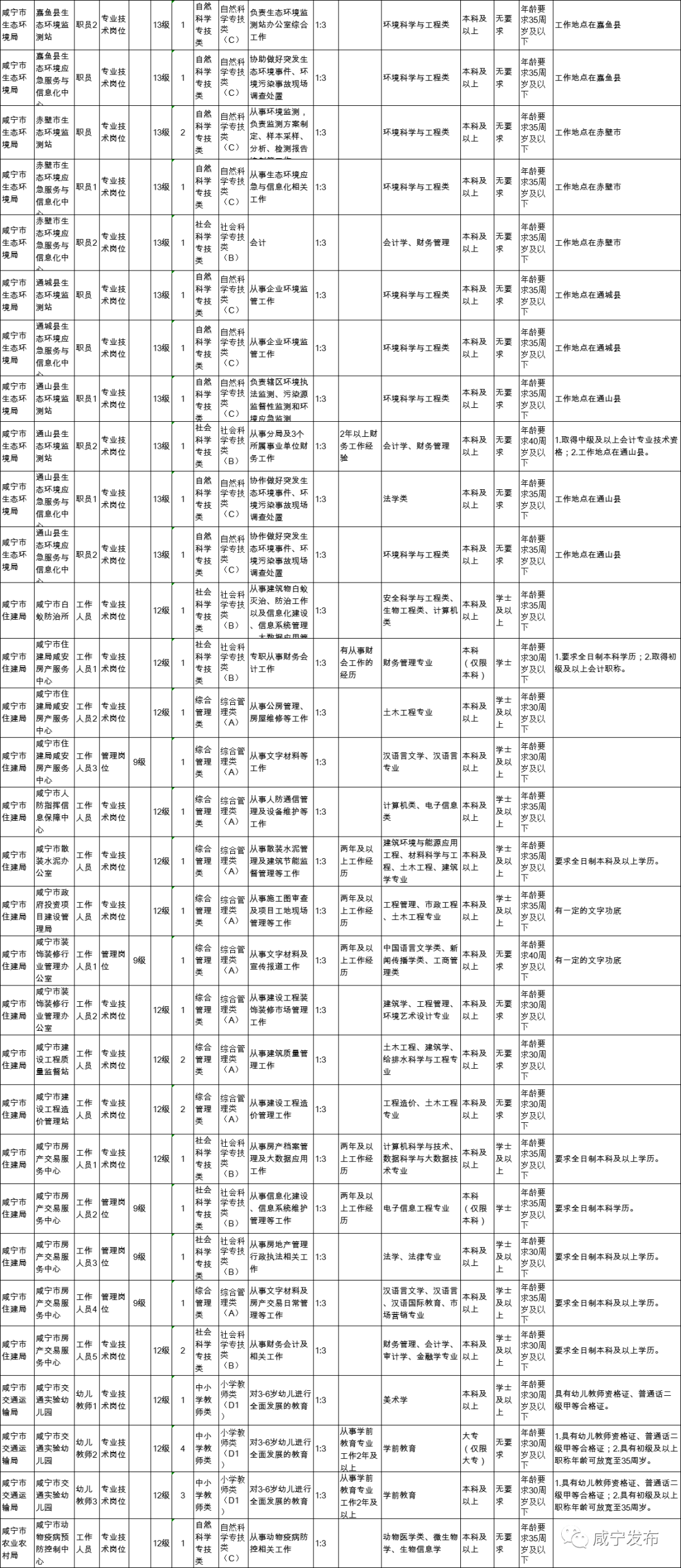 1.2022年咸寧市直事業(yè)單位公開招聘工作人員崗位表