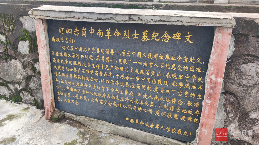 4月1日,天氣陰冷。記者沿107國(guó)道來(lái)到綠樹掩映、碧水繞村的汀泗橋鎮(zhèn)赤崗村一組石頭嘴山,只見中南革命烈士陵園干凈整潔,紀(jì)念碑巍然聳立。