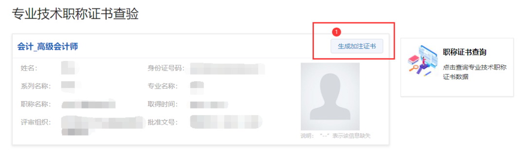 01?如存在2021年及以后相應年度職稱信息,登陸后即可查看到相關信息,點擊“生成加注信息”。