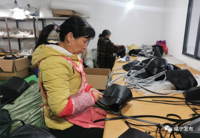 在黃鐵村,廢棄的村小學老舊教學樓變身就業(yè)車間,咸安區(qū)鄉(xiāng)村振興局和村里投入100多萬改造教學樓,拋出優(yōu)惠政策,依托鄉(xiāng)賢引進時尚男女包產(chǎn)業(yè),專門出貨網(wǎng)絡商務訂單。